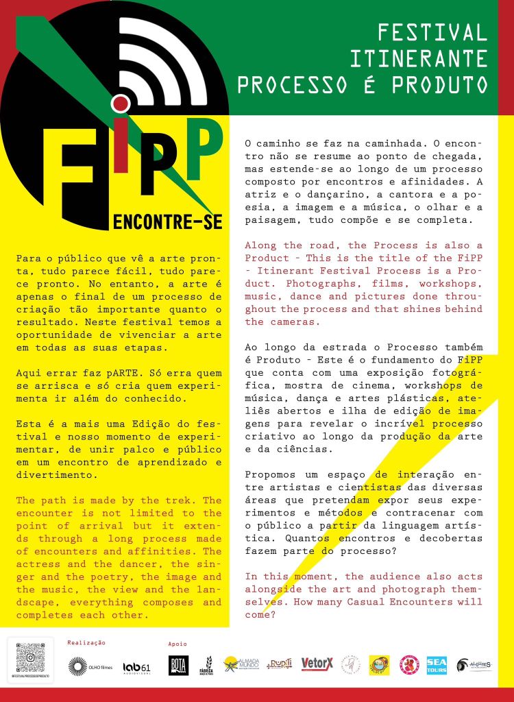 O FiPP – Festival Itinerante Processo é Produto é uma iniciativa que procura celebrar e valorizar não apenas o resultado final das manifestações artísticas, mas também todo o processo criativo que as acompanha.